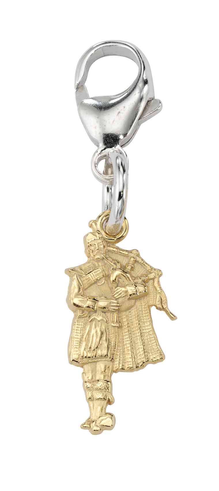 You can almost hear the bagpipes as this jolly Scotsman charm evokes the memory of a team trip. This trip commemorative gold charm hangs from a silver lobster clasp for easy application to a bracelet.