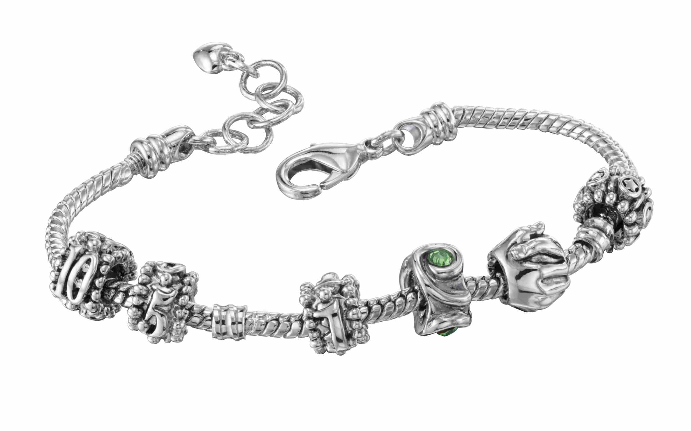 Custom slide-on beads line this silver bracelet with lobster claw clasp. Beads are awarded for sales,trainings,career rank, downline development and more.