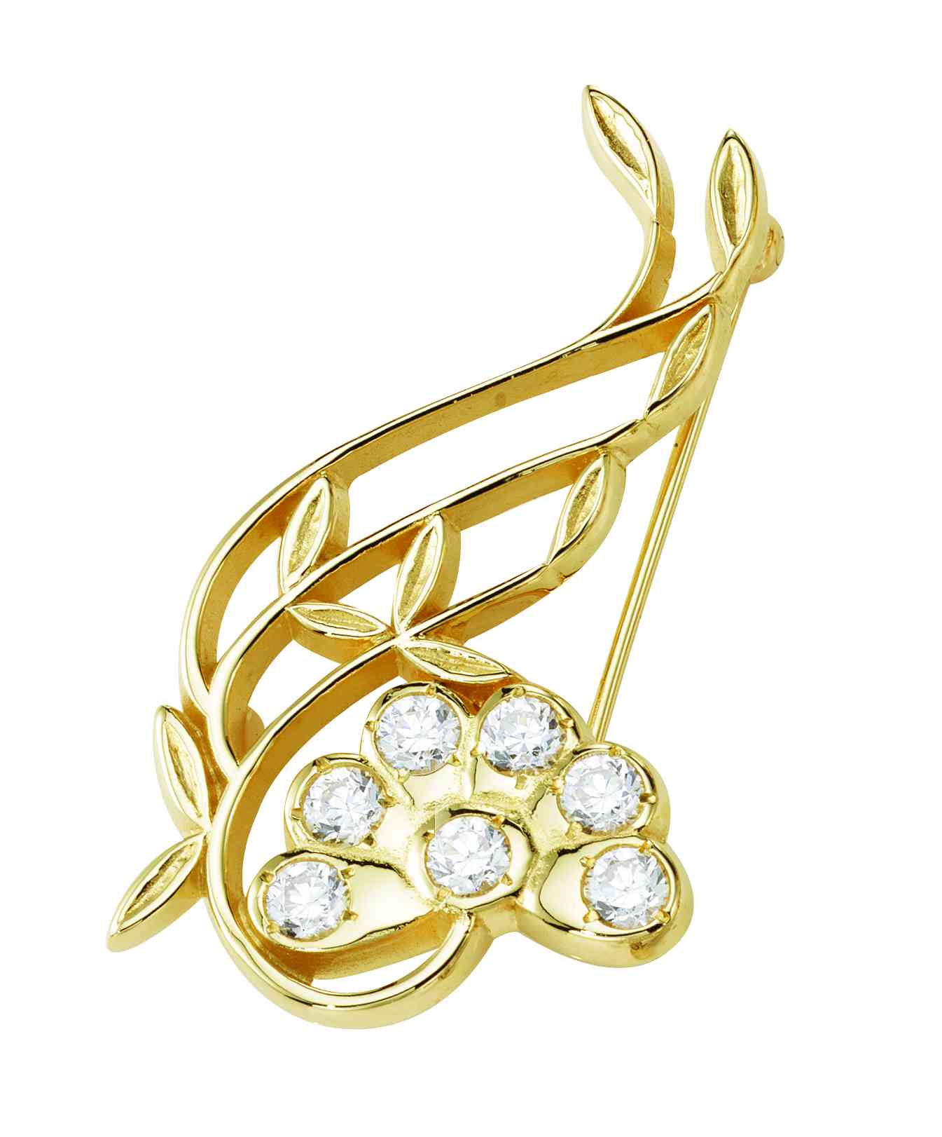 Seven diamonds adorn this elegant custom gold flower and ivy brooch pin, reminicent of times gone by.