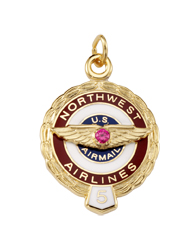 Beautiful multipiece construction shows in this custom length of service award charm for Northwest Airlines honoring 5 years of service.