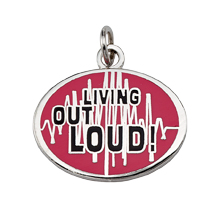 You can practically hear the music in this custom "Living Out Loud" event charm. Finished with high polished silver and color-fill it includes event details and dates on the back.