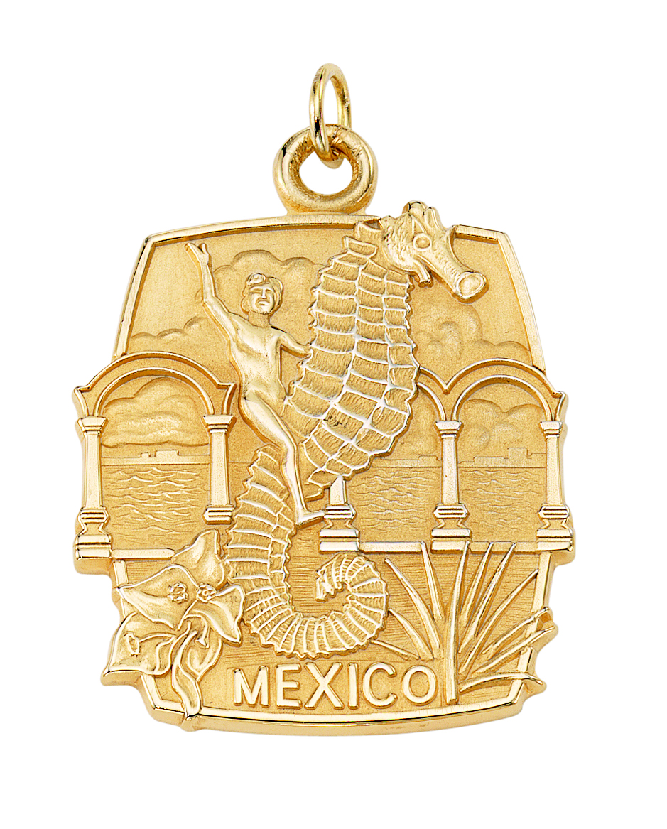 The Seahorse Statue and Malecon Arches in downtown Puerto Vallarta highlight this gorgeous custom gold trip charm. This charm includes a custom message on the back with details of the trip and dates.