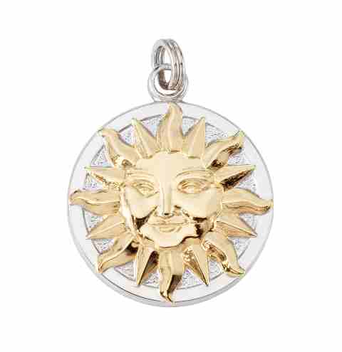 A friendly gold sun marks the center of this beautiful custom two-tone trip charm. With trip details and dates on the back, it is a truly one-of-a-kind keepsake.