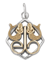 Twin mermaids adorn this beautiful custom two-tone trip charm for Crete Greece. With trip details and dates on the back, it is a truly one-of-a-kind keepsake.