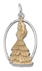 A beautiful flamenco dancer is modeled in this custom cut-out two-tone trip charm for Spain. With trip details and dates on the back, it is a truly one-of-a-kind keepsake.