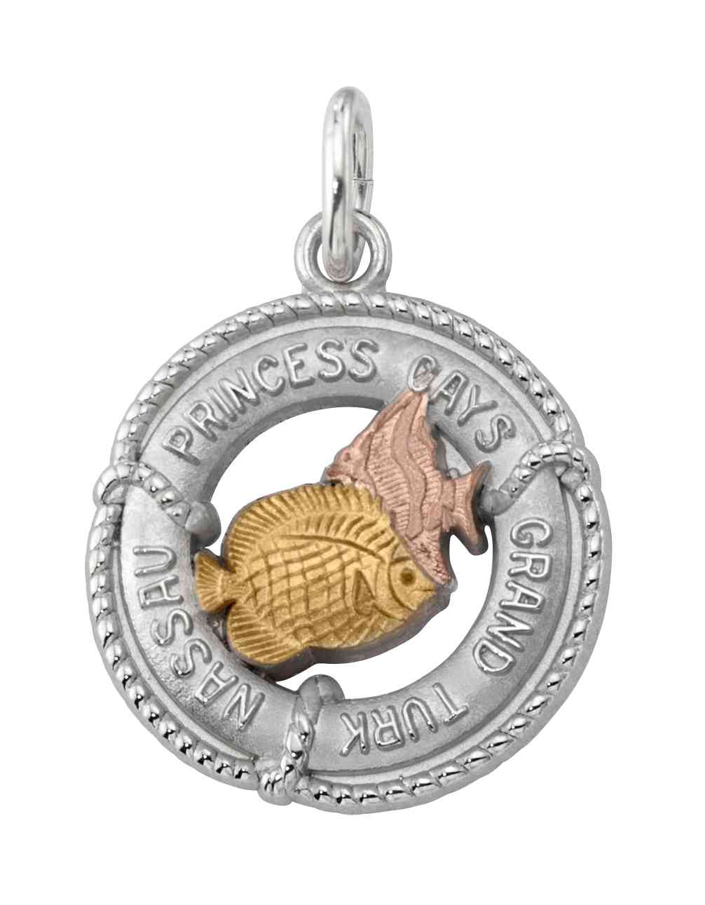 Gold, rose gold and silver blend in this modeled nautical themed trip charm for Nassau, Princess Cays and Grand Turk. With trip details and dates on the back, it is a truly one-of-a-kind keepsake.