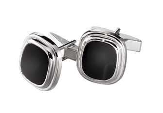 Genuine black onyx is featured on this elegant custom pair of sterling silver cufflinks. A company logo or message can be engraved on the back or a stone set in the onyx itself.