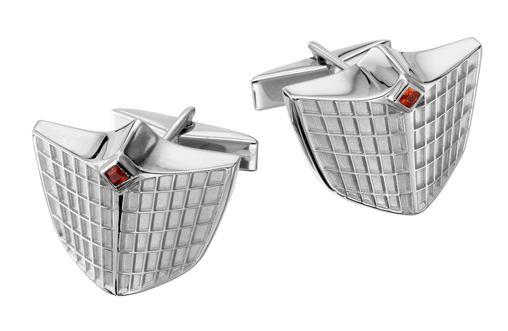 International Trucking Company created these one-of-a-kind cufflinks to promote its new truck grill. Dotted with a garnet stone, these cufflinks were available to purchase on the company's online store.