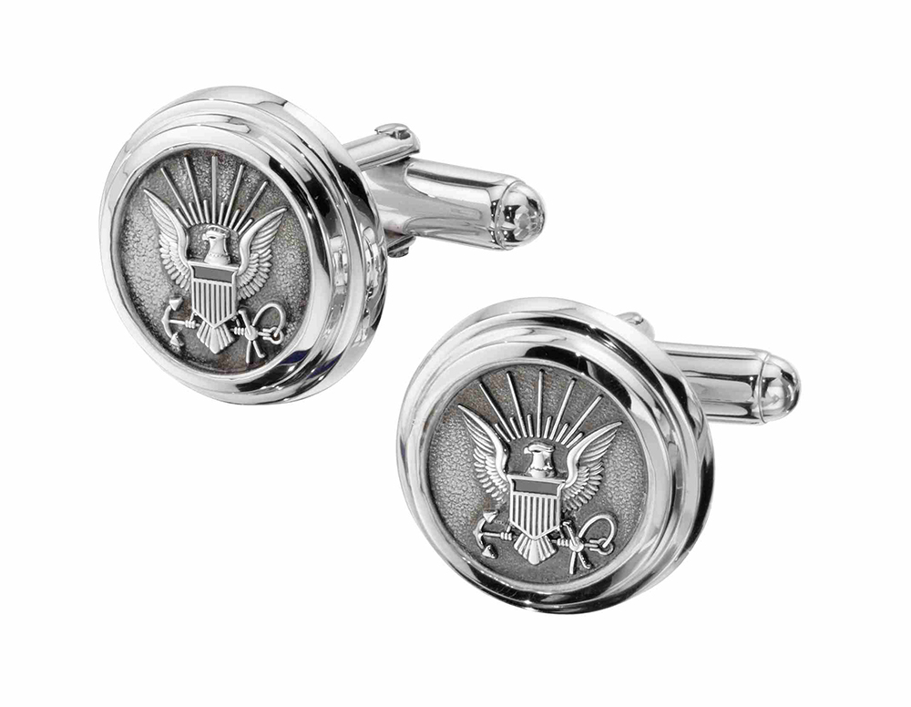 The United States Navy logo is modeled ontop of an antiqued silver background on these custom sterling silver sandblast and polished cufflinks. A great gift for the soldier in your life, or family member.