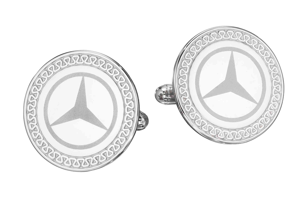 The Mercedes logo is frost engraved on the front of these sterling silver custom cufflinks. An elegant gift for the new car buyer or as an employee achievement award item.