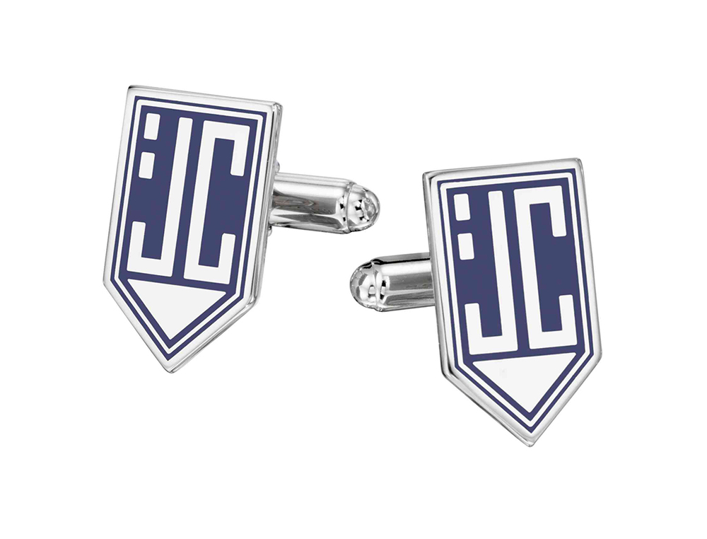 This JC logo is highlighted with blue color-fill on these highly polished geometrically shaped custom cufflinks. I great member member affiliation gif.