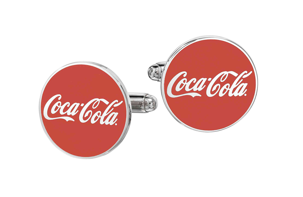 Red color-fill really makes the Coca-Cola logo stand out on these custom silver cufflinks. Part of Coca-Cola's years of service recognition awards.