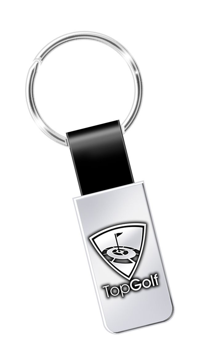 The Top Golf Logo is raised and polished on this custom silver and leather keytag. A great promotional give-away at golf tournaments and trade shows.