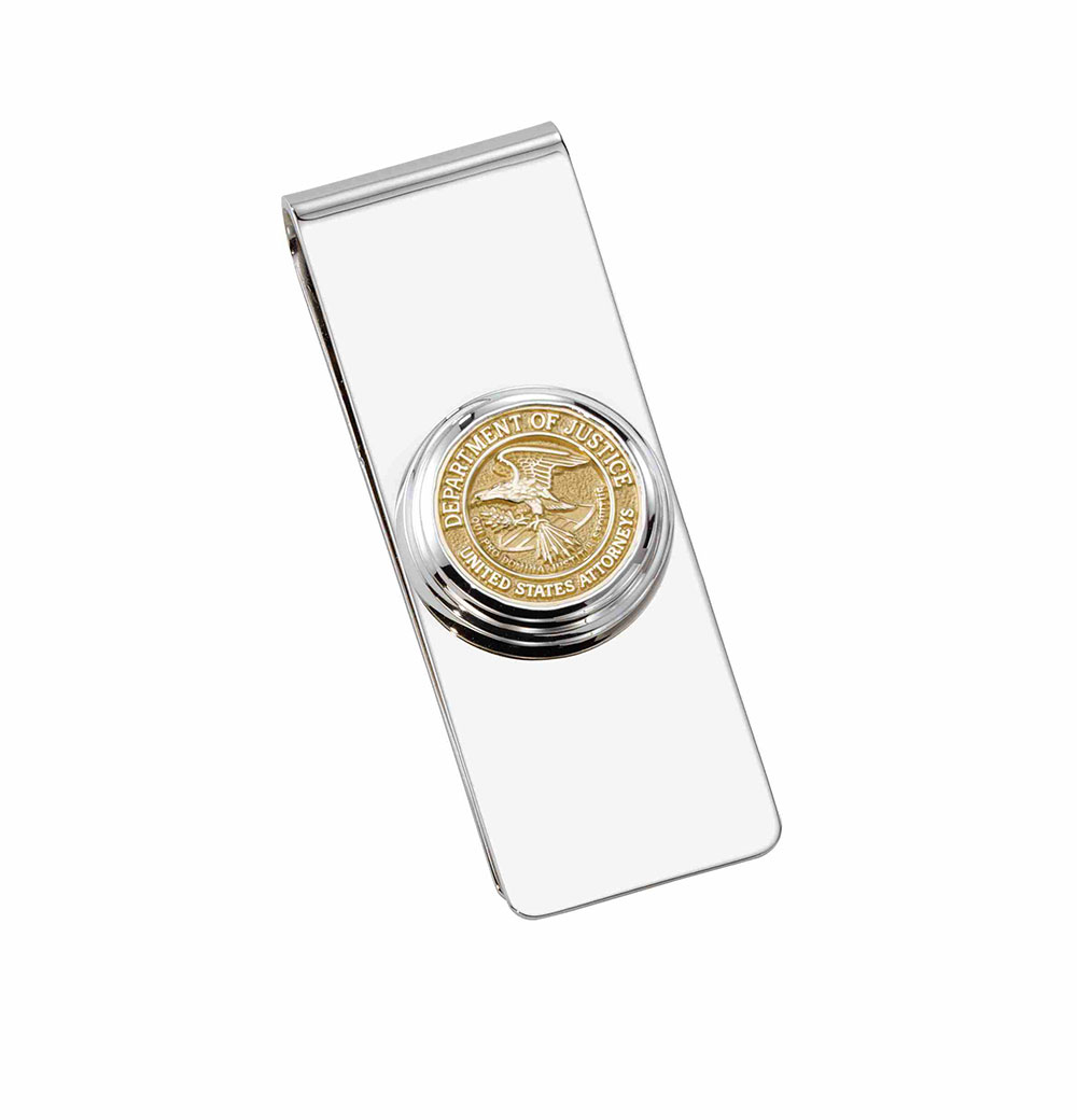 A gold National Rifle Association logo is the insert in this elegant custom sterling silver money clip. A great gift for donors or as an online store selection.