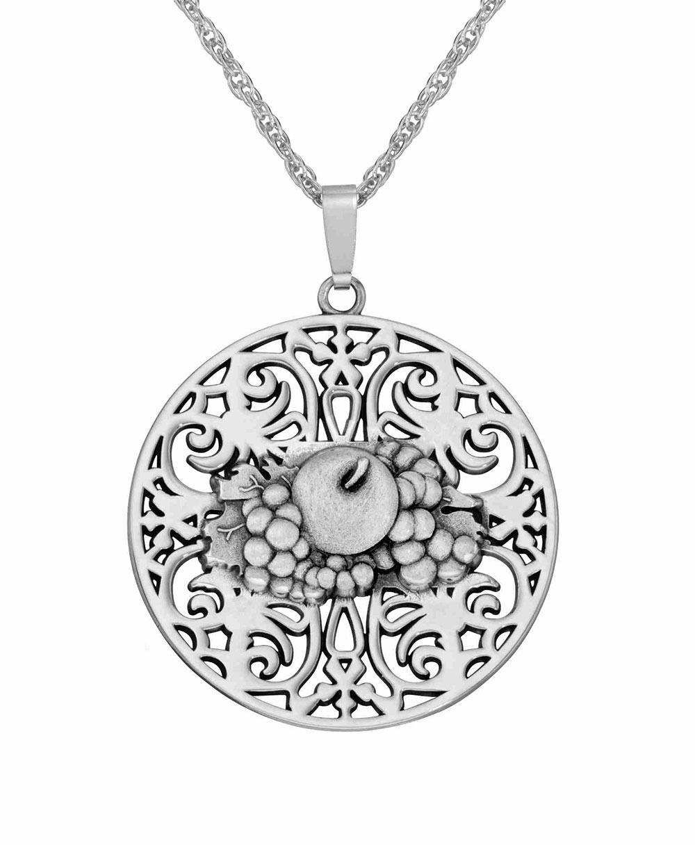 The Fruit of the Loom fruity logo is artfully embedded into this custom filigree styled necklace pendant. A timeless look for an employee service award or major client.