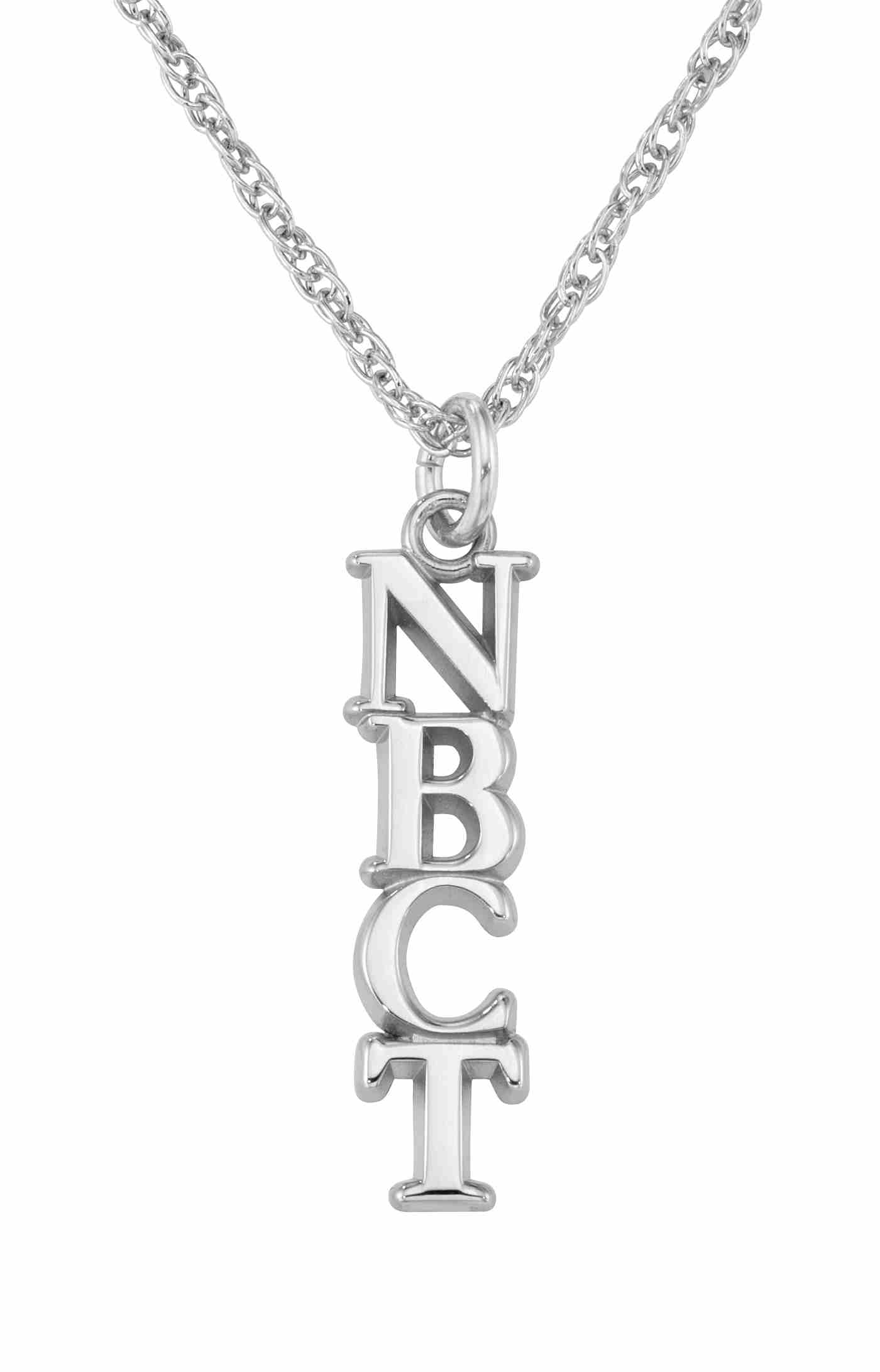 This stacked custom cut-out NBCT silver necklace pendant is worn proudly by the members of the National Board of Certified Teachers.