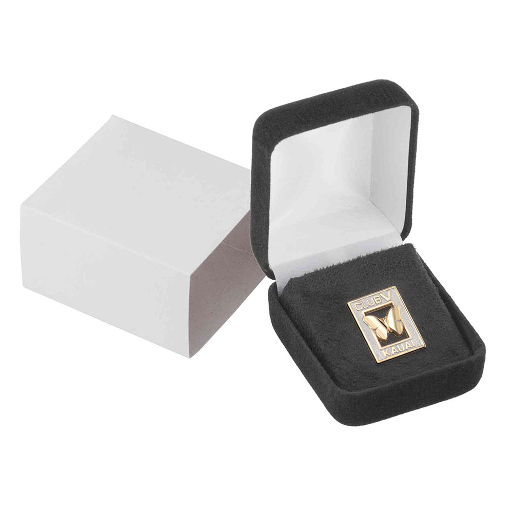 Deluxe black velour box measuring 2.25" X 1.875" - includes applicable insert.