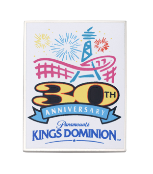 This colorful custom pin celebrates the 30th anniversary of King's Dominion Theme Park. This design was custom made and printed on to the metal pin.