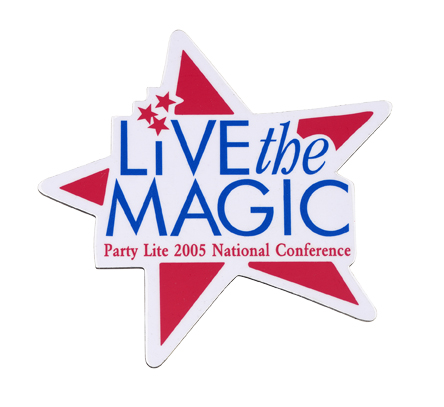 This custom event pin was designed for the Party Lite National Conference. Attendees were able to take these home with them as a reminder to "Live the Magic."