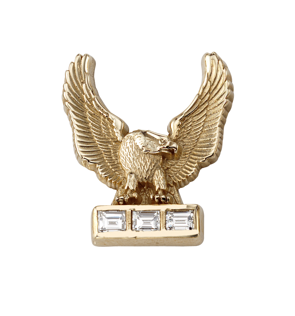 Three diamonds underscore a powerful eagle with open wings. This pin could be awarded for employee length of service, performance, or sales achievement.