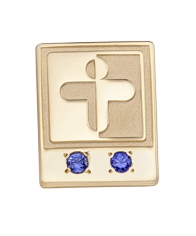 This classic gold healthcare years of service pin indicates year level with number and color of stones.