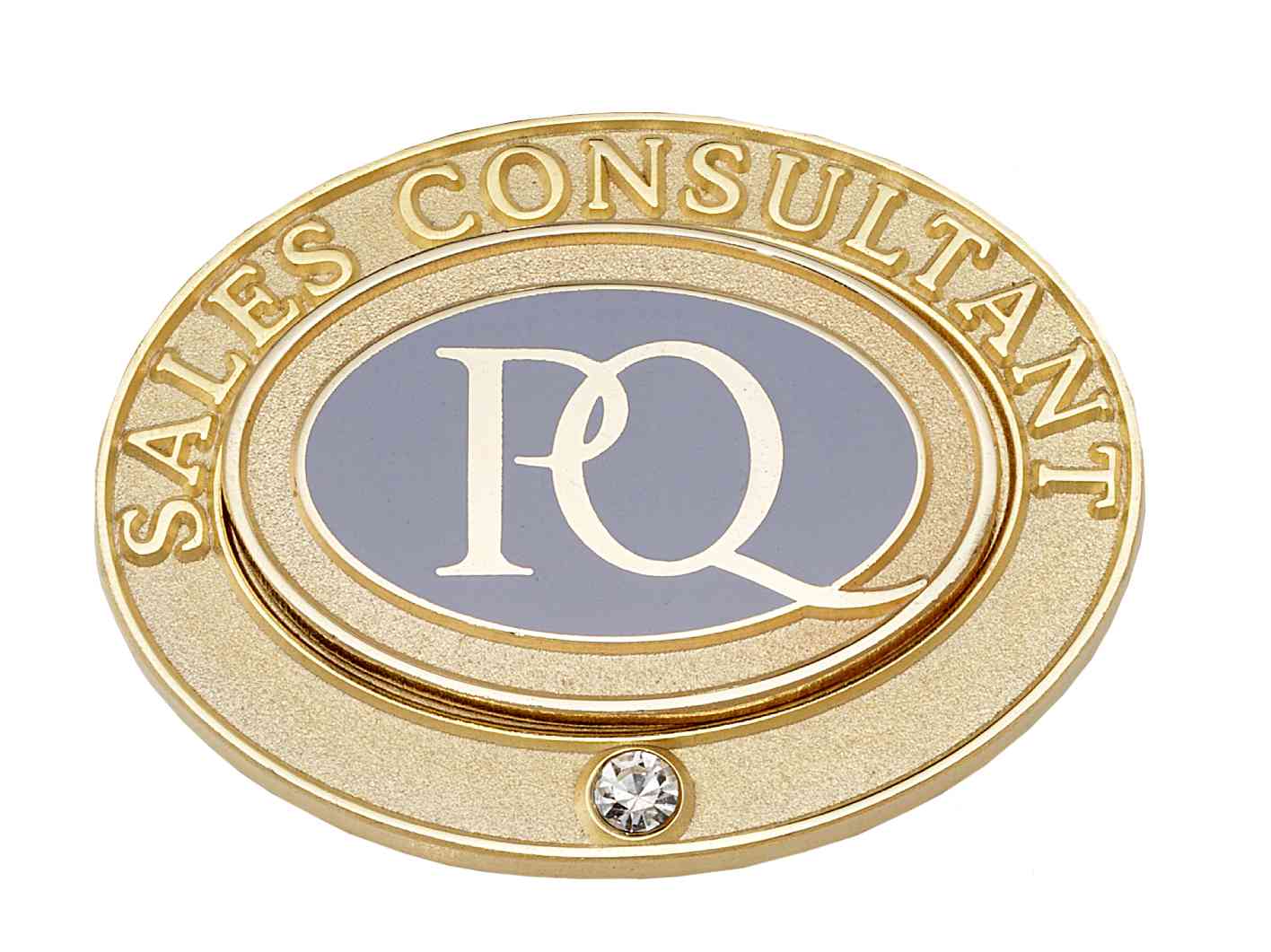 Private Quarter recognizes their consultants' career ranks with this color filled center gold pin surrounded by a second circular gold "jacket" pin that fits on the back. This "jacket" can be replaced with a new one as consultants move through the ranks.
