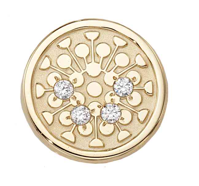 Multiple diamonds sparkle on this stunning gold custom designed lapel pin for Tupperware. Each diamond represents a sales level achieved.