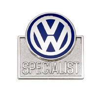 A silk screened Volkswagen logo sites atop this custom silver lapel pin which designates the recipient a Specialist. Volkswagen awarded these lapel pins to each technician reaching specialist status.