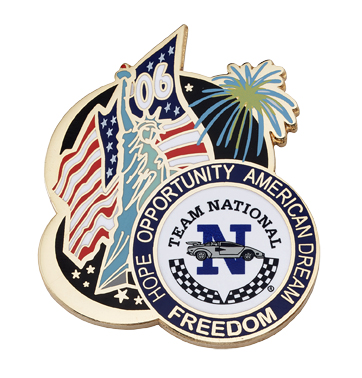This custom one-of-a-kind gold and color-filled lapel pin commemorates Team National's annual convention in New York City in style.