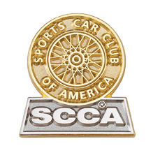 The Sports Car Club of America's tire logo sits atop this two tone custom member lapel pin. Members will proudly wear this unique and stunning lapel pin for all to see.