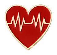 This custom red color-filled heart shaped lapel pin features a heart rate graph in polished gold. Perfect for blood donors, hospital supporters and more.