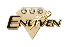 Three diamonds are set in the top of a diamond shape for this custom Enliven lapel pin. Color-fill and polishing make the logo stand out.