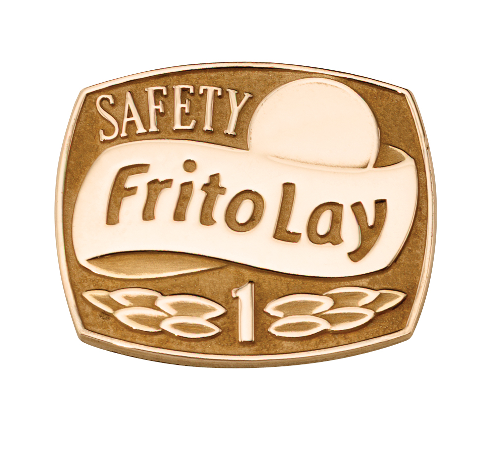 Frito-Lay chose polished metal against a sandblasted background for this custom safe driving lapel pin.
