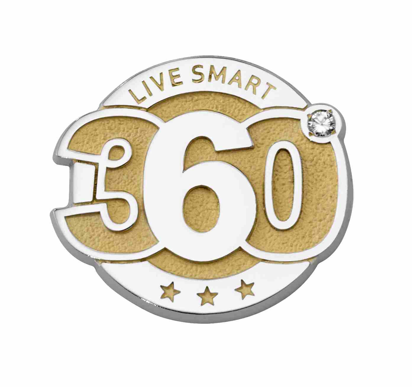 LiveSmart 360° awarded these custom two-tone pins to their top performers. The degree symbol is cleverly studded with a diamond.