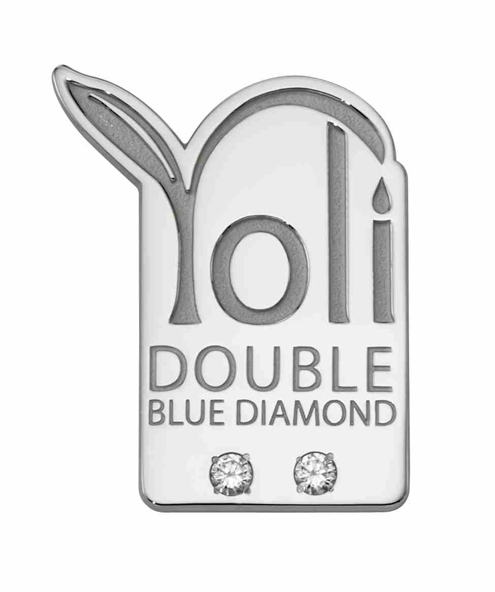 Yoli awarded its top sellers with different pins based on levels of achievement. Their "Double Blue Diamond" level pin features their logo branching out from the pin and two symbolic diamonds below.