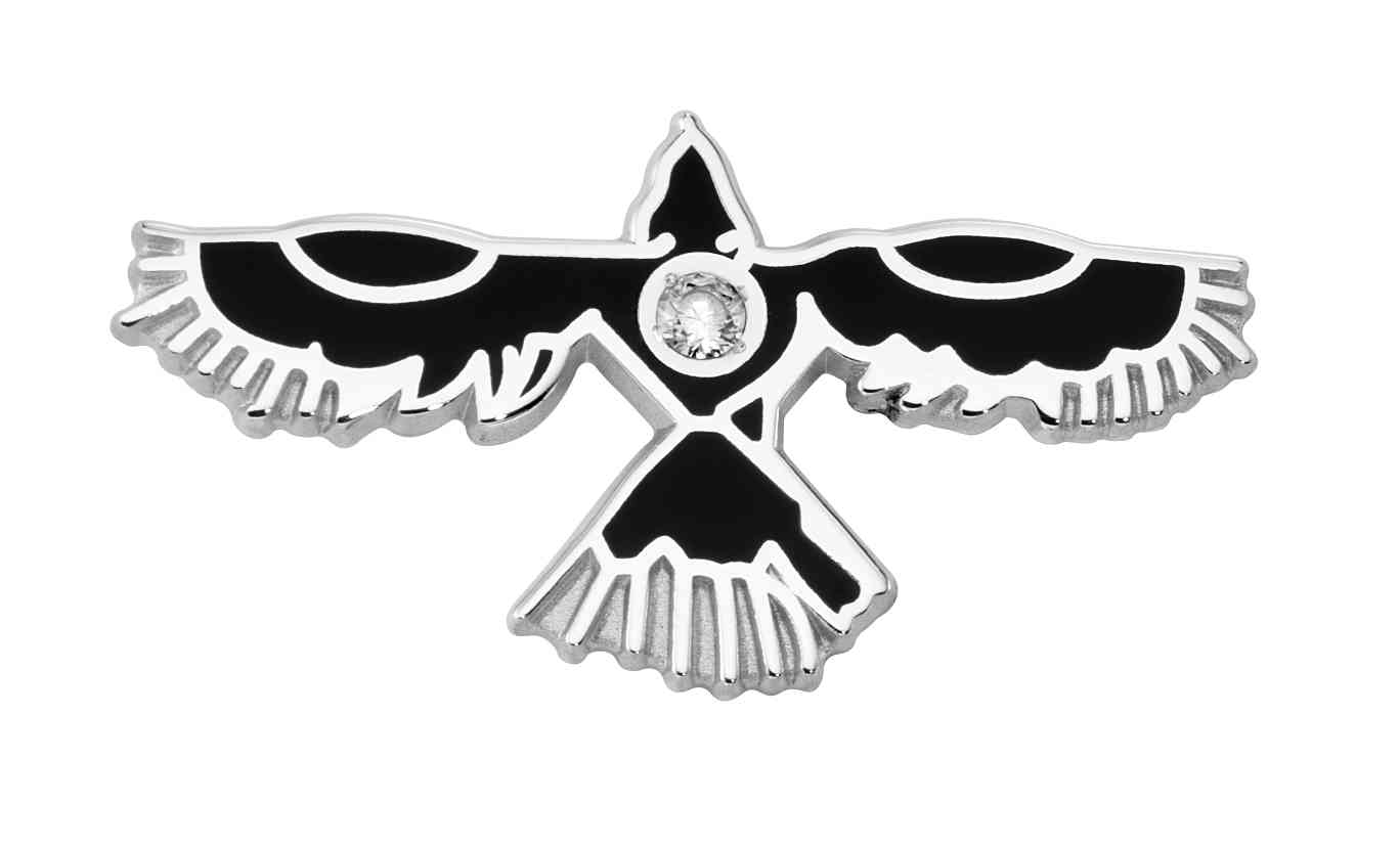 Black color-fill contrasts against the metal to make a dynamic and striking performance award pin. A diamond is set in the center of the bird logo for extra sparkle and elevation.