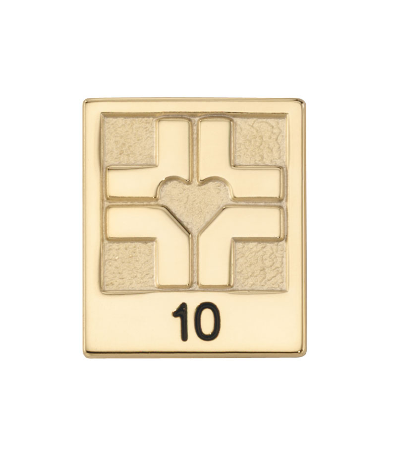 The length of service award pin features the company's logo in a square frame. The number below is engraved and colored with black color-fill.
