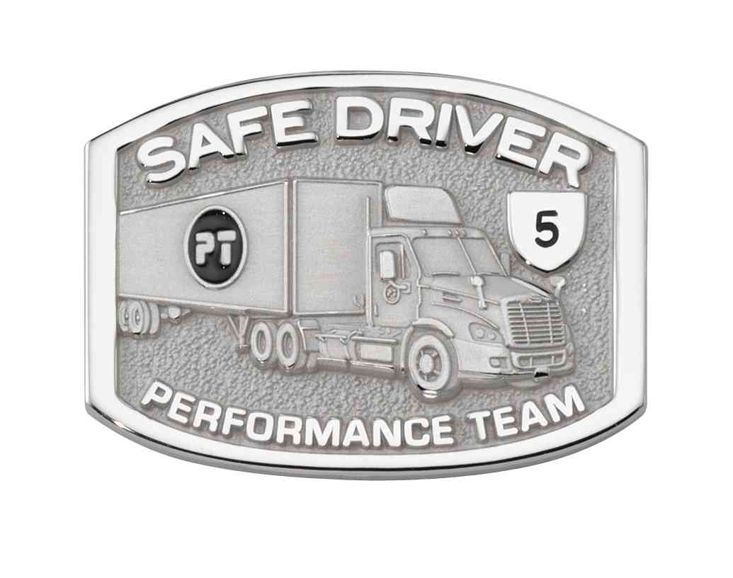 This safe driving award for Performance Team thanks the recipient for five years of safe driving. The design features a detailed and logoed truck from their fleet.