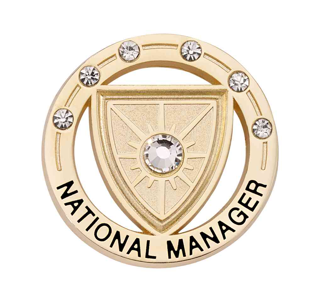 A beautiful round diamond is integrated into the MWR Life logo in this career level lapel pin. Smaller diamonds create a celebratory crown over the logo, while the career level is engraved at the bottom.
