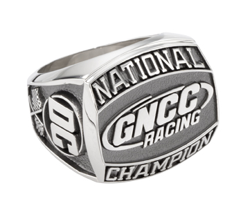 This handsome sterling silver men's championship ring features the racing series' logo on the bezel and the winning team's logo on the side.