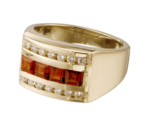 This bold sterling silver women's award ring features channel-set rubies and diamonds to create a modern and sleek look.