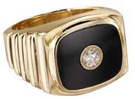 A rounded black onyx stone is the focus of this sterling silver men's award ring. The band of the ring has been given a waving ripple effect.