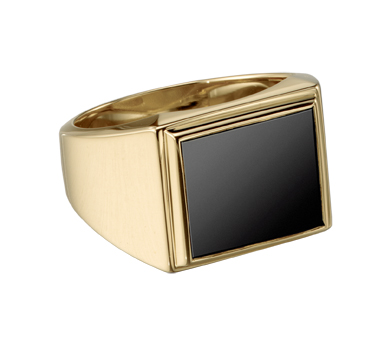 A rectangular black onyx stone is the focus of this classic sterling silver men's award ring.