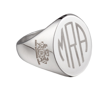 Custom engraved initials personalize this classic 10 karat gold men's award signet ring.