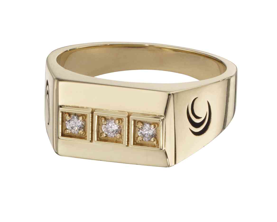 Three diamonds are set in a row in this sleek sterling silver men's award ring.