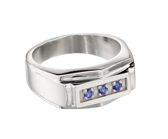 This exquisitely designed sterling silver ring marries a simplistic aesthetic with understated details, perfectly showcasing three sapphires.