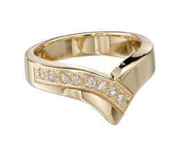 A string of diamonds add a touch of elegance to this modern design. The flattering v-shape band shines in sterling silver
