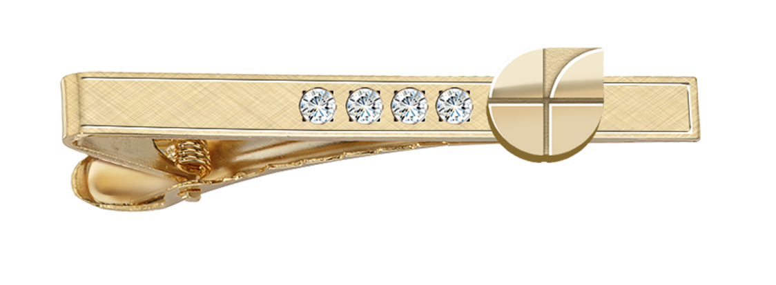 The Cincom logo is custom modeled with a sandblast and polished finish and adhered onto this brush finished gold tie bar. Stone set diamonds indicate year of service level in this employee service program award.