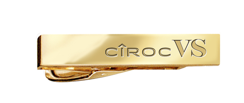 The Ciroc VS brandy logo is laser etched on this classic custom wide style gold tie bar. An excellent employee service award option.